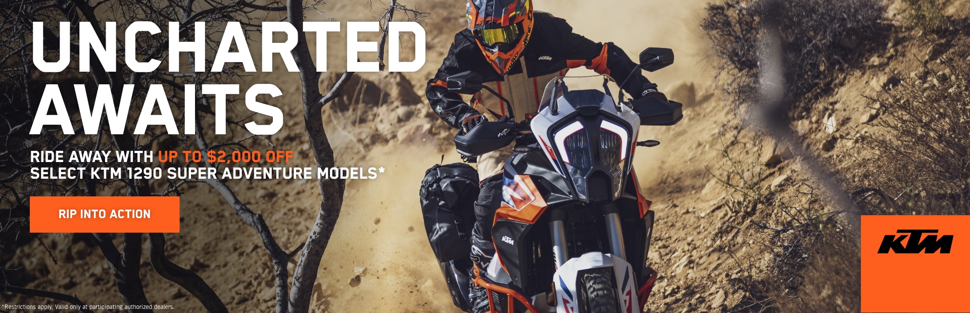 *Terms and Conditions: Special Retail KTM POWERWEAR & POWERPARTS Value-Add promotion has a value of up to $2,250 MSRP (excluding tax) for the customer to redeem on KTM POWERWEAR, POWERPARTS and/or SPAREPARTS with the purchase of a new unregistered 2023 KTM (1290 SUPER DUKE GT) street model motorcycle. Special Retail KTM POWERWEAR & POWERPARTS Value-Add promotion has a value of up to $2,000 MSRP (excluding tax) for the customer to redeem on KTM POWERWEAR, POWERPARTS and/or SPAREPARTS with the purchase of a new unregistered 2023 KTM (1290 SUPER ADVENTURE S) or 2024 KTM (1290 SUPER DUKE GT, 1290 SUPER ADVENTURE R / S) street model motorcycle. Special Retail KTM POWERWEAR & POWERPARTS Value-Add promotion has a value of $1,250 MSRP (excluding tax) for the customer to redeem on KTM POWERWEAR, POWERPARTS and/or SPAREPARTS with the purchase of a new unregistered 2024 KTM (890 ADVENTURE R) street model motorcycle. Special Retail KTM POWERWEAR & POWERPARTS Value-Add promotion has a value of $1,000 MSRP (excluding tax) for the customer to redeem on KTM POWERWEAR, POWERPARTS and/or SPAREPARTS with the purchase of a new unregistered 2024 KTM (890 SMT) street model motorcycle. Special Retail KTM POWERWEAR & POWERPARTS Value-Add promotion has a value of $500 MSRP (excluding tax) for the customer to redeem on KTM POWERWEAR, POWERPARTS and/or SPAREPARTS with the purchase of a new unregistered 2024 KTM (790 DUKE, 990 DUKE) street model motorcycle. Special Retail KTM POWERWEAR & POWERPARTS Value-Add promotion is ONLY redeemable at the time of the motorcycle purchase. Offer is not available as an actual cash payment. Offer valid October 20, 2025, through December 31, 2025. Special Retail KTM POWERWEAR & POWERPARTS Value-Add promotion is valid through authorized United States KTM dealers only. See local authorized dealer for details.